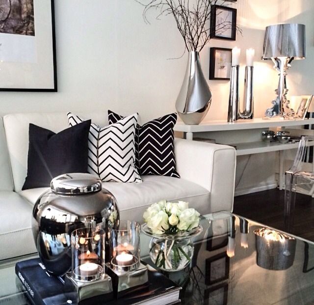 bring winter spirit inside in a stylish way. Add silver pillows, bowls